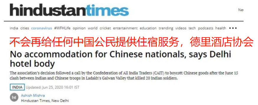 印度國內最大的酒店協會宣佈,旗下的3000多家酒店、餐廳——拒接中國人。