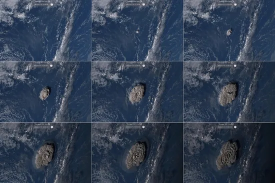 2022年1月15日,位於南太平洋的島國湯加發生劇烈的火山噴發,噴發出的火山灰最高衝至約30公里高空。多顆衞星都拍攝到了火山噴發的過程。