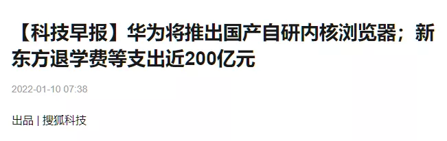 【科技早報 】華為將推出國產自研內核瀏覽器;新東方退學費等支出近 200 億元_ Presto _小米_ Redmi ( sohu.com )