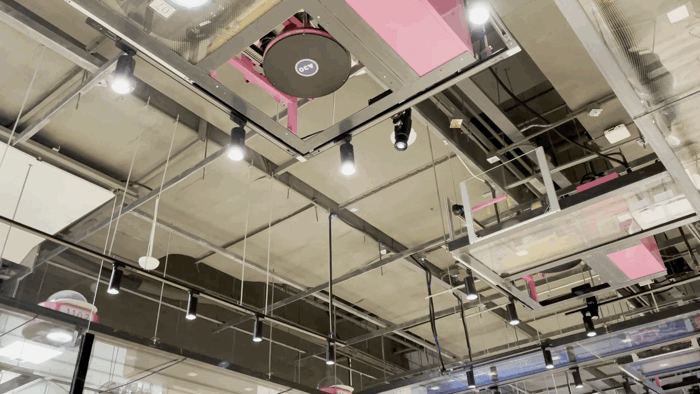 做好之後,還會通過餐廳頂部的雲軌系統運送到餐桌上方,隨纜繩降落,懸停在人們面前,供其取用。智慧餐廳還供應牛肉漢堡、炸薯條等西餐。
