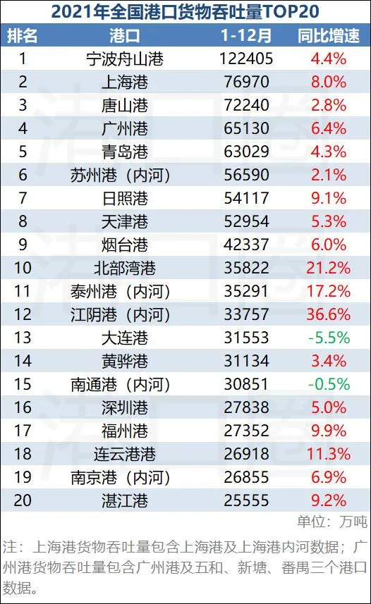 2021年全國港口吞吐量排名出爐:位置出現變動 | 港口圈_風聞