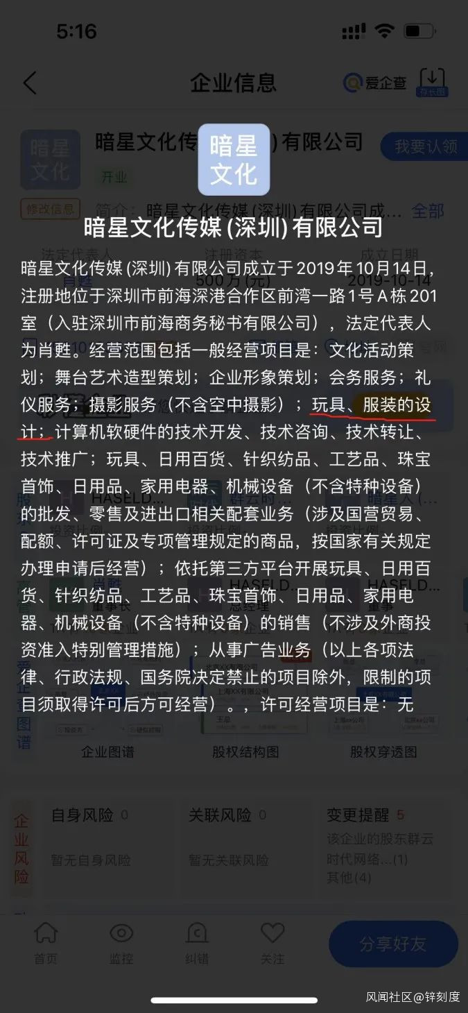 經營範圍包括玩具、服裝的設計(圖源:愛企查)