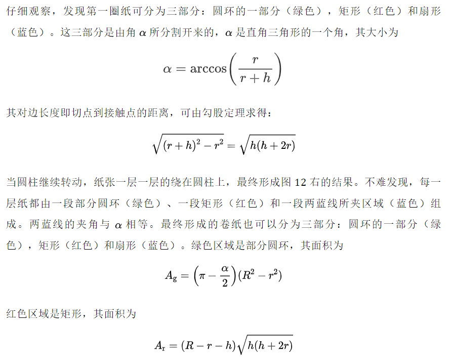 等面積模型一種最簡單、也最容易想到的方法是利用廁紙卷展開前後側面積相等來計算。