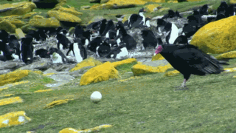 兩隻土耳其禿鷹搶來搶去,一不小心又把它踢到了企鵝大隊裏。
