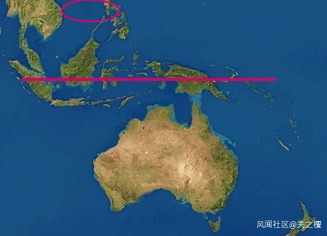 這條紅線就是澳大利亞的內心安全線,當年日本帶給的土澳的恐懼讓它時刻緊盯南海,而當年新加坡的意識到我們開始在南海開始新戰略,新加坡和土澳關係從二戰就很親密,兩國自然是通氣的。