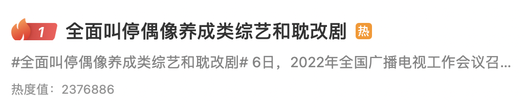 在全國廣播電視工作會議上,全面叫停了偶像養成選秀、“耽改”劇。