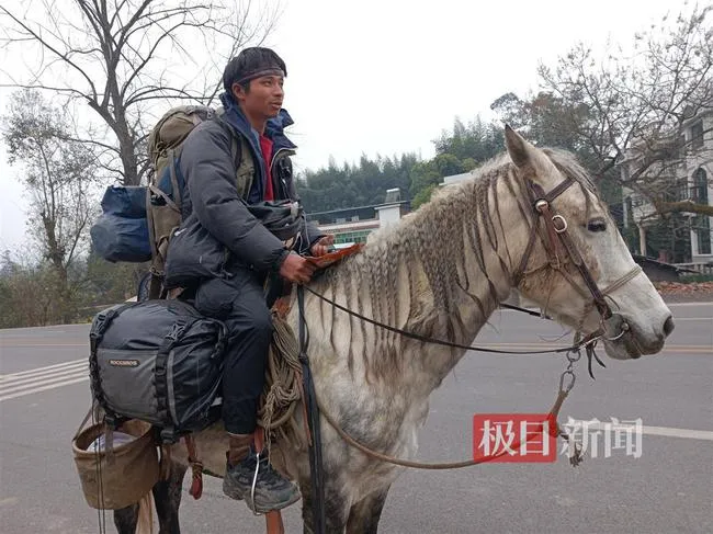 1月15日,重慶梁平區聚奎鎮順安村,29歲的樂曉雲騎着他的青驄馬沿着國道前進。
