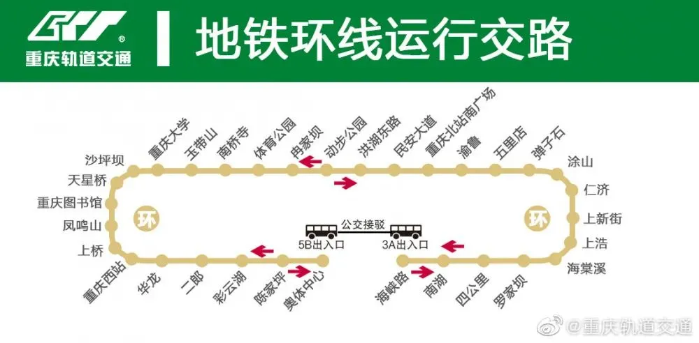 1月18日中午,因地鐵環線鵝公巖軌道大橋一根吊索叉耳螺桿出現異常,為確保市民出行安全,重慶軌道集團立即啓動應急預案,環線奧體中心經謝家灣至海峽路區段暫停運營,開行奧體中心經冉家壩至海峽路區段交路。在此期間,公交集團開行海峽路經謝家灣至奧體中心、龍騰大道至楊家坪區間2條公交接駁專線(運行時間與環線保持一致),確保暫停運營區段乘客順利出行。