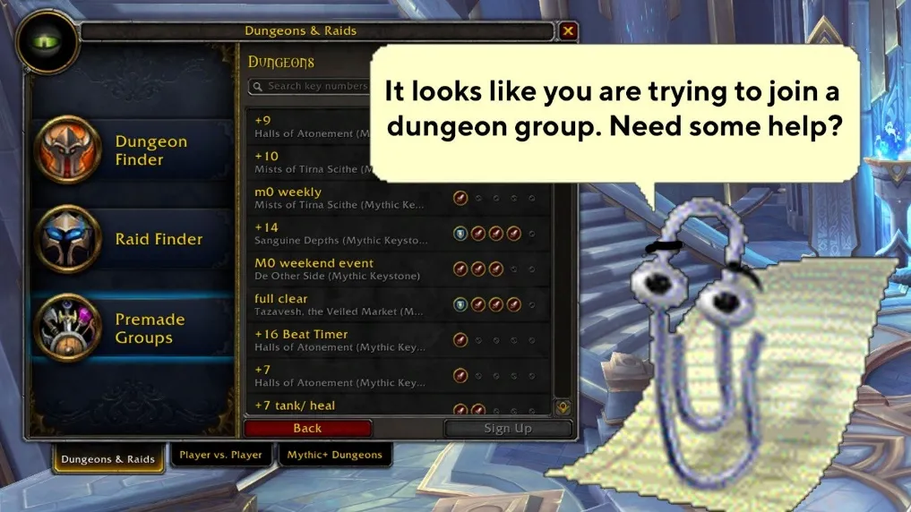 例如把《魔獸世界》的登陸界面,變成微軟程序的極簡風格;讓剛剛復活的Word小助手曲別針,重新上崗成為魔獸的新手幫助。