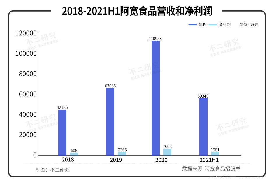 「不二研究」發現,2018年以來,阿寬食品進入業績的上升通道;但在2021年上半年,這一趨勢似乎正被打破。