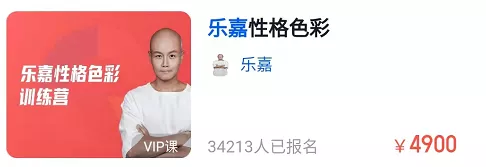 像樂嘉的性別色彩課,目前34213人報名,客單價4900元,GMV(商品交易總額)能達到1億+元。