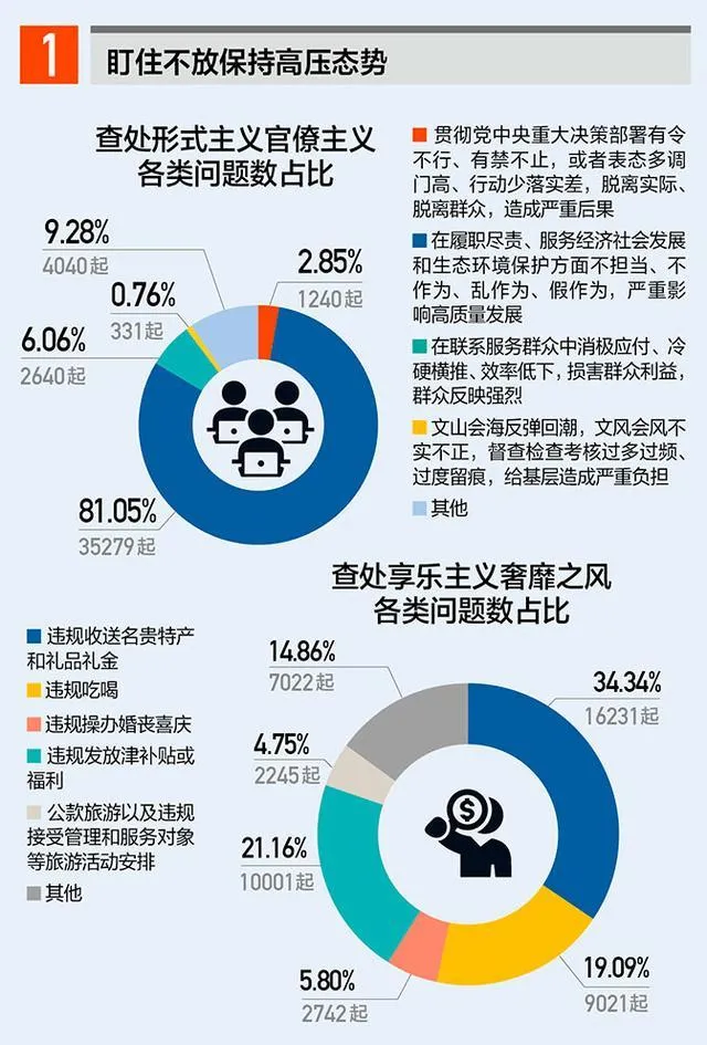 就在不久前,中央紀委國家監委公佈了2021年1至11月全國查處違反中央八項規定精神問題統計表。數據顯示,2021年1至11月,全國共查處形式主義、官僚主義問題4.4萬起,這其中亂作為、假作為相關問題有35279起,佔到了問題總數的81.05%。