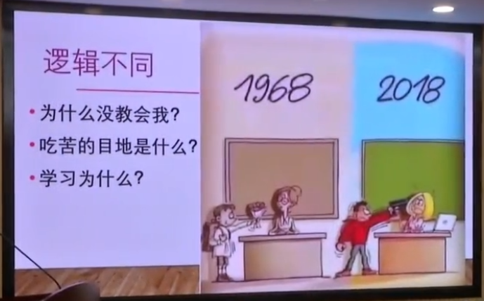 所以這樣我想首先一個我們在就從我這個年齡層來講,我就可以感覺對現在的本科生的教學思想觀念上老師得有所改變,那麼每個時代面臨的問題不一樣,所以大家看就是説過去都是讓孩子怎麼想辦法,在家裏這個做作業,不讓玩,現在得小孩把孩子拉出去讓他玩,是吧?