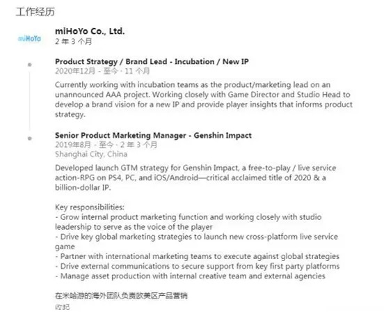 雖然早在2019年的時候,米哈遊就在英偉達GTC大會展示了一款名為《Project X》的第三人稱射擊遊戲,並暫定於2021年發佈。但此後,這個3A項目沒有更多消息,只有該公司前員工的領英履歷透露了一點,但目前這條信息已被刪除,有關這個項目更多的資料只能等米哈遊官方公佈。