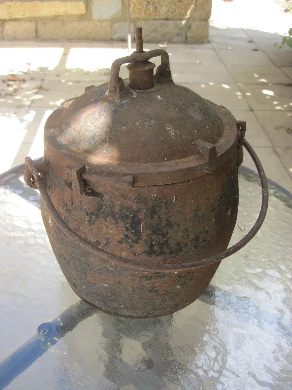 1980年,英國製造的高壓鍋。" alt=“500” />為了保證安全,高壓鍋蓋上一般會有個排氣閥,當高壓鍋達到一定的壓力值時重錘就會被抬起,排出蒸汽。