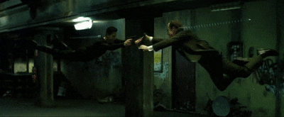 《黑客帝國》系列一直都是“酷炫”“特效”“精彩打鬥”的代名詞,尤其是在攝影、CG技術上它做出了非常多示範性的案例,至今也經常作為影視分析的典型案例。在前三部的每一部中,我們能看到相當多招牌性的場面,即使你沒有看過電影,也一定對這些場面不會陌生:
