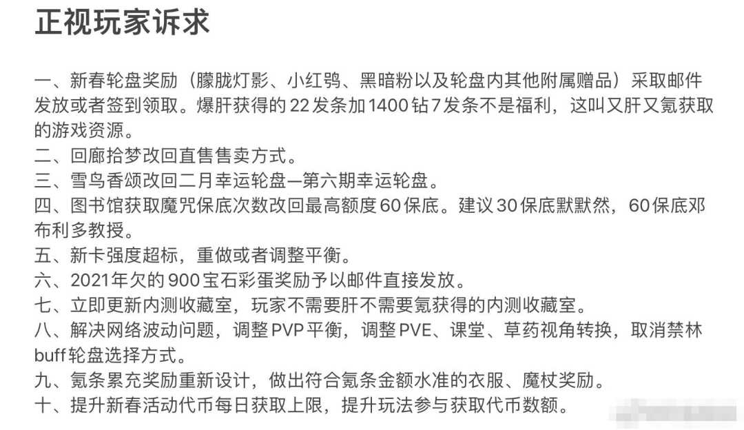 雖然,“新春轉盤”的獎品並不一定能吸引全部玩家,但作為一款在主線劇情、決鬥俱樂部、禁林、魔咒課教室等多種“副本”都需要用到卡牌的RPG對戰手遊,關於卡牌的調整更新則事關遊戲內全體玩家的利益。