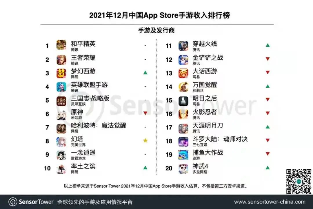 《魔法覺醒》上線以來,連續多日登頂中國ios端暢銷榜和下載榜榜首,移動應用情報平台Sensor Tower顯示,2021年12月中國ios端手遊收入排行榜中,《魔法覺醒》排在第七,僅次於米哈遊的《原神》。據七麥數據顯示,《魔法覺醒》自9月上線以來,單ios端就砍下了1.43億美元,合9.07億人民幣的收入。