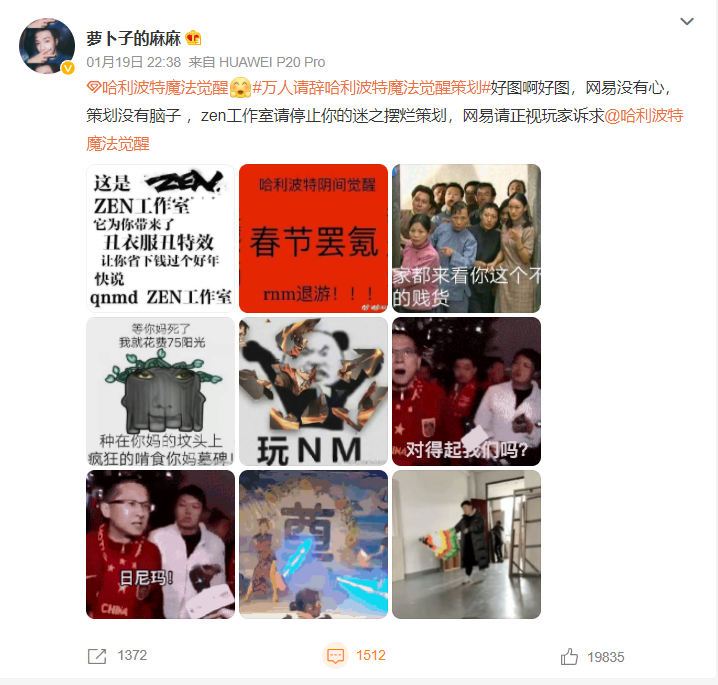 1月20日上午10點,就在《魔法覺醒》體驗服更新春節活動的24小時後,#萬人請辭哈利波特魔法覺醒策劃#的詞條登上了熱搜第一。截止發稿前,該詞條已經產生了3.4億次閲讀和4.4萬次討論,閲讀趨勢一小時內增長了近4000萬次,輿論發酵的速度幾乎是呈幾何倍增長。