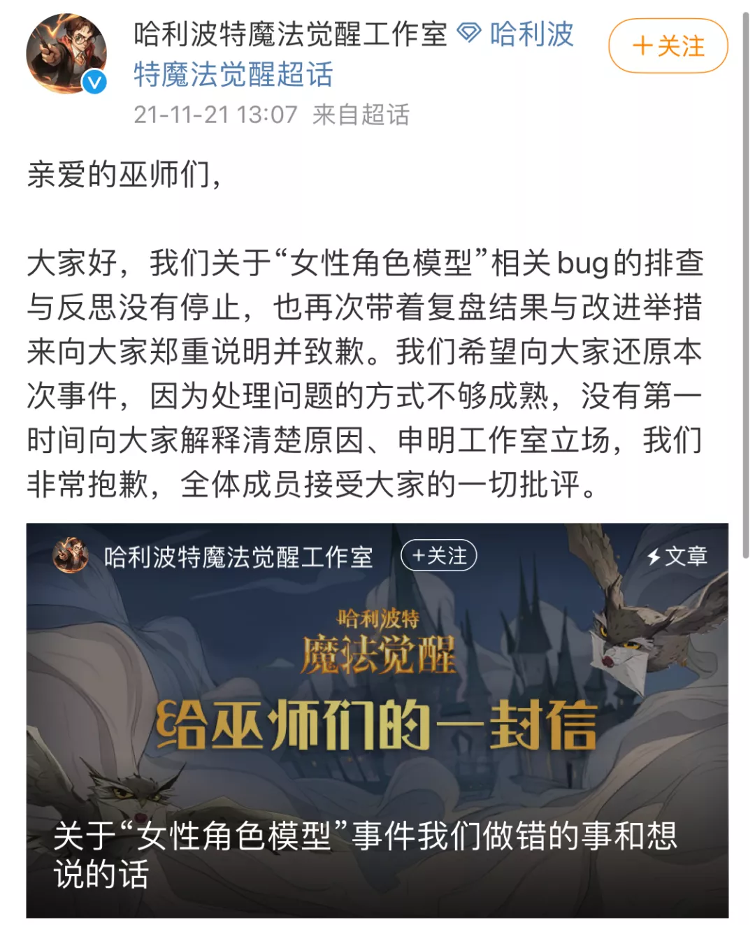 作為一個老玩家,小發個人還是希望《 哈利波特 · 魔法覺醒 》團隊不要再發一些治標不治本的道歉聲明瞭。