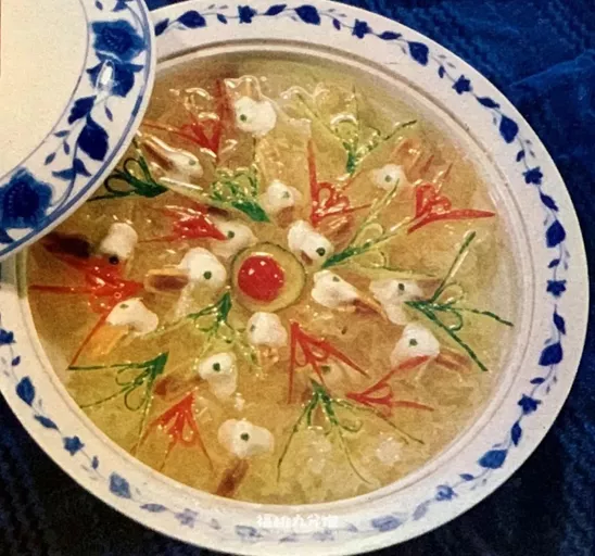 據説她最喜歡的一道清燉鴨舌,要用精挑細選的幾十道鴨舌與鴨肉一起,放入高湯中慢燉。煮熟後,鴨舌浮在鮮湯的上面,盛在一個特備的杏黃色大碗裏,“甚合太后心意”。