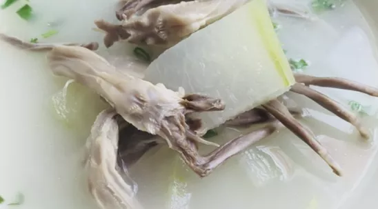 再往後進入民國,張愛玲在《談吃與畫餅充飢》裏回憶自己童年時在天津吃到的各種美味,其中有一道是鴨舌小蘿蔔湯: