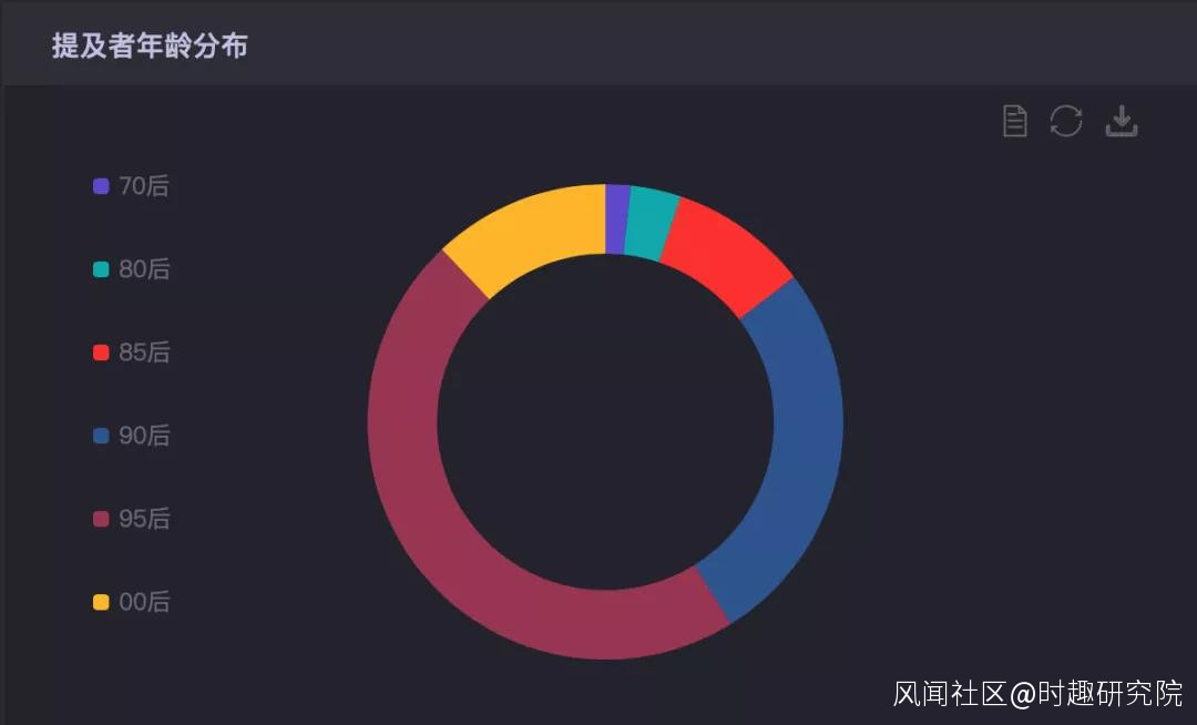 根據時趣洞察引擎數據顯示,關注金錢豹的用户中以95後、90後和00後為主,95後佔據了半壁江山。