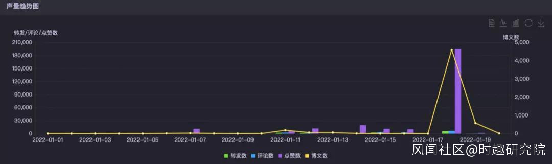 根據時趣洞察引擎數據,可以看到,Gucci虎年廣告在最近這兩天有一個明顯的聲量提升。