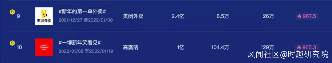 根據時趣洞察引擎數據顯示,在微博平台,營銷戰役TOP10的主要以互聯網電商平台、食品飲料和家居生活和口腔護理為主。可以看到,春節營銷在社交媒體上聲量比重大的主要為春節場景下,家庭團圓,過年春節等使用高頻的相關品牌。