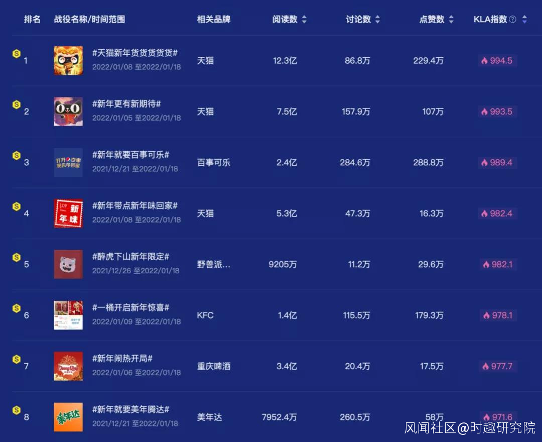 之所以這類品牌營銷戰役位居TOP10,一方面可能是消費者真的在關注囤年貨,同時,消費者們對這些品牌的關注度極高,另一方面,也不排除品牌在春節營銷期間投入了大量的火力。
