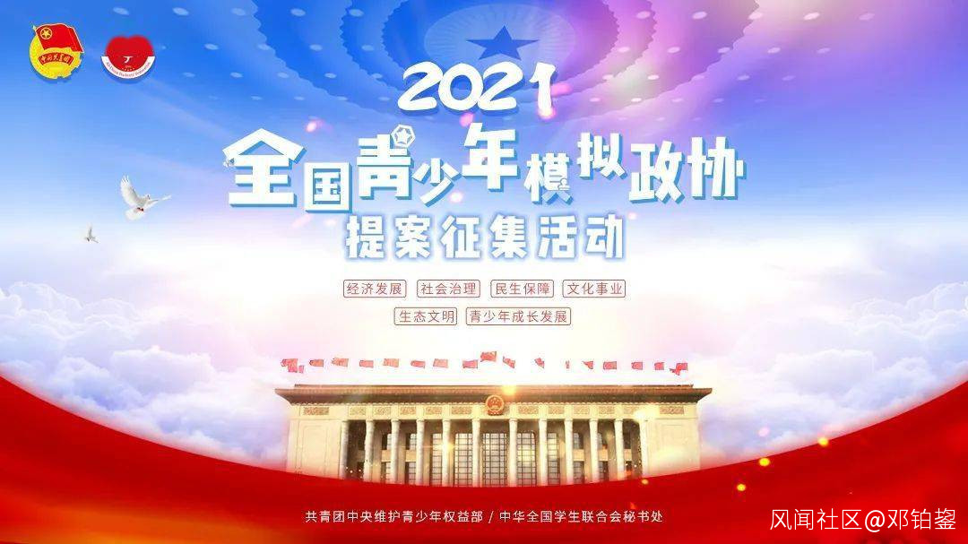 筆者出於好奇,點擊了通知鏈接,瞭解了模擬政協活動的情況。青少年模擬政協活動由團中央權益部與全國政協共同舉辦,旨在鼓勵青少年學生在經濟發展、社會治理、民生保障、文化事業、生態文明、青少年成長髮展等領域,自主選擇題目,在充分調研基礎上,形成明確的案由案據,以模擬政協提案形式提出政策建議。