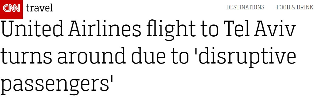 CNN:由於乘客不守規矩,週四晚上,一架飛往特拉維夫的聯合航空公司航班在飛行途中掉頭。