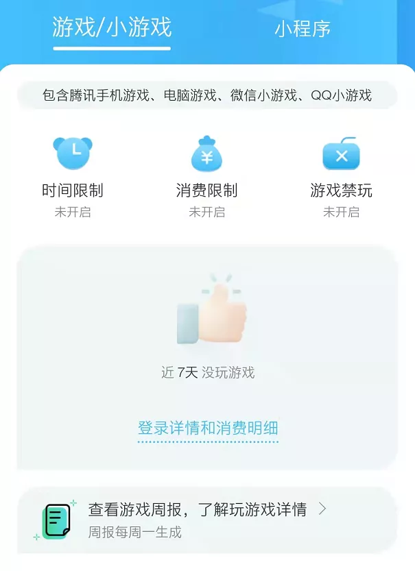 家長登錄後,可以查看自家孩子的遊戲記錄,還可以進行時間限制等操作。