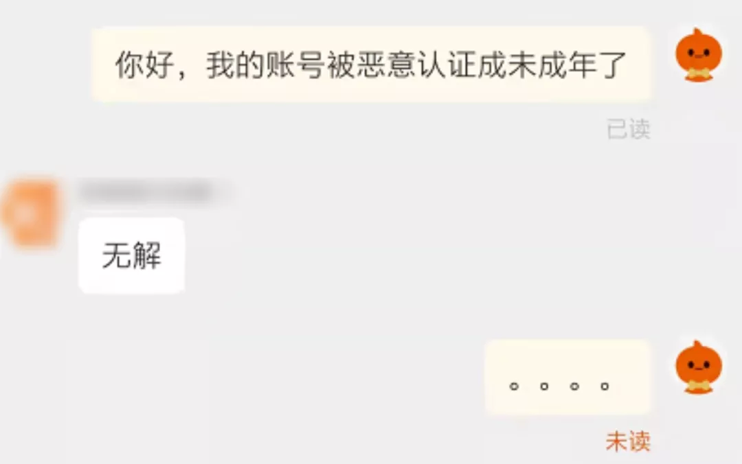 當前實名認證那人,發現這個賬號不是自己的,於是轉手把你的賬號設置成了未成年。。。