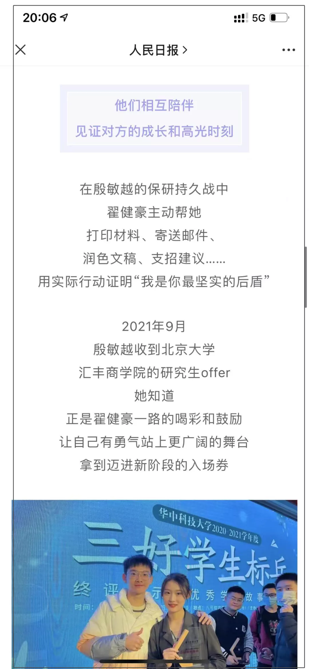 如果學校官V專門寫一篇文章介紹這段愛情,雖然有點餵狗糧但也不至於太過。事實上這就是他們學院的同學採寫,母校官V發佈的一篇稿子,當時評論區全都是這個畫風: