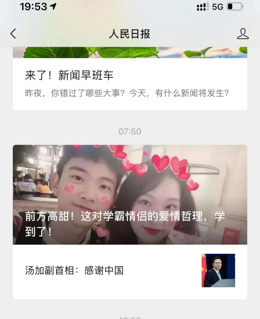 於是我的好奇心突然就起來了,想知道到底是怎樣的愛情哲理,把國內最大的官媒都給驚動了,單獨發了一篇文章給介紹,乃至於把湯加副總理都給擠到次條去了。