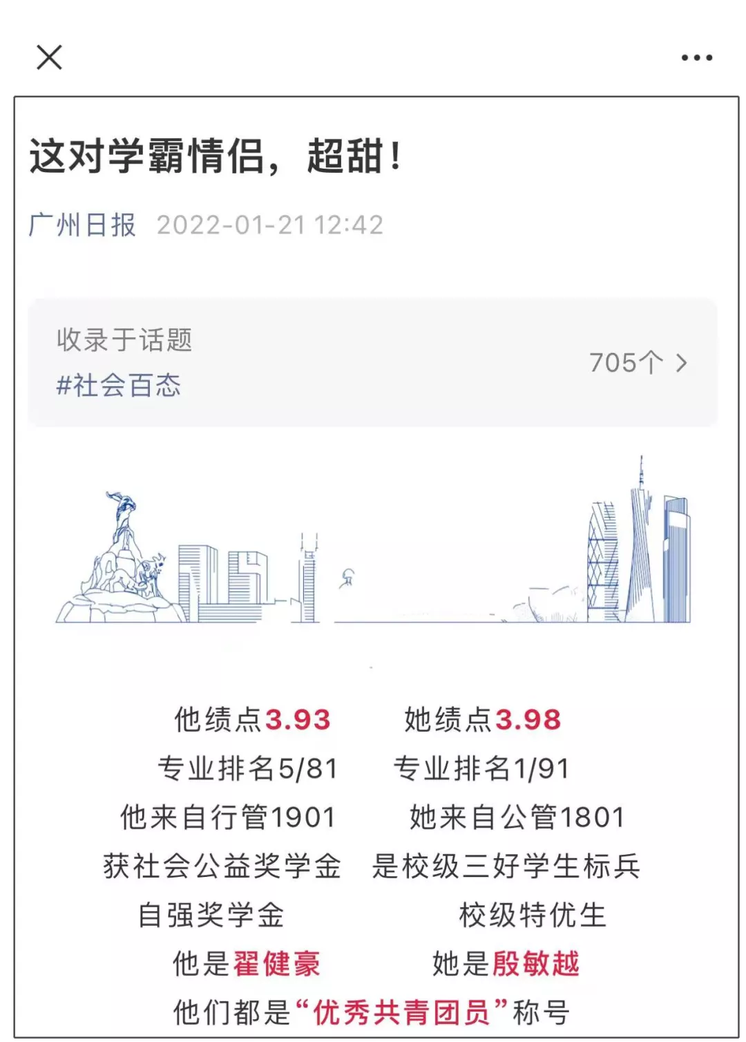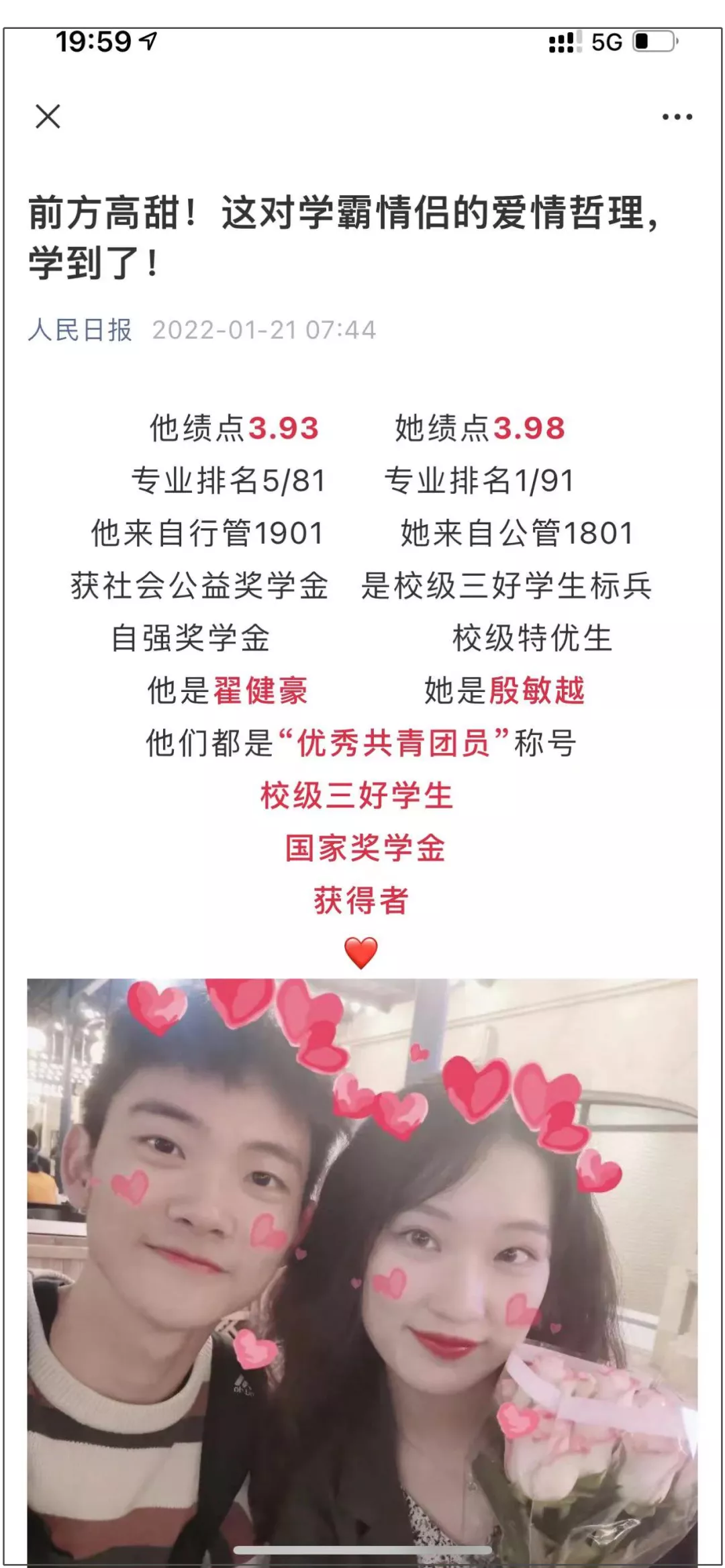 開頭説了這對情侶成績很好: