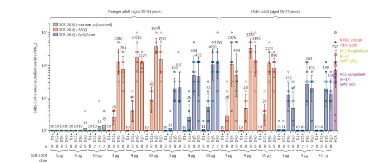 比如三葉草生物,其在新冠重組蛋白疫苗一期的實驗中,使用了葛蘭素史克的AS03佐劑和Dynavax的CpG1018佐劑。從免疫應答層面來看,AS03佐劑組的效果,要顯著好於CpG1018佐劑組。