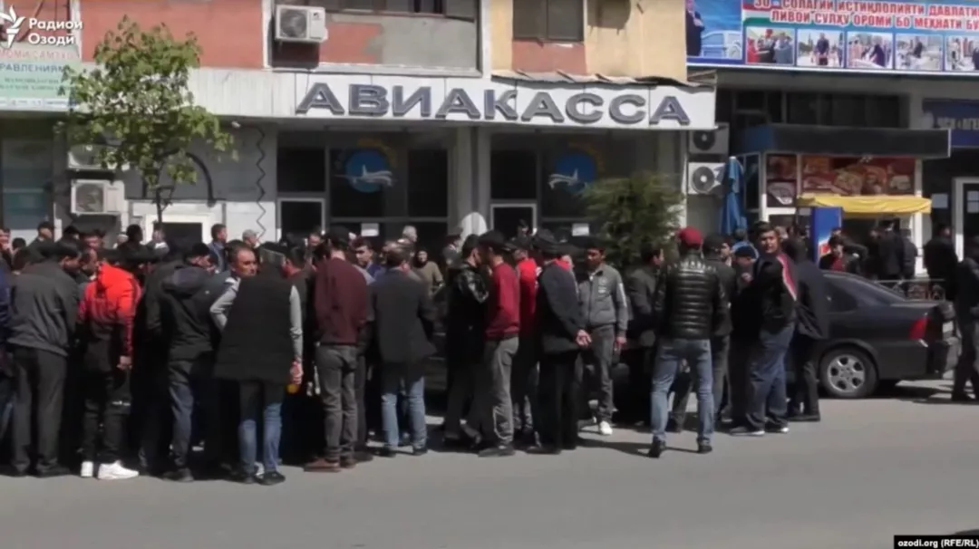 俄羅斯終於向塔吉克移民開放邊境,但高昂的機票價格讓勞工無法進入。有幾個人説他們已經在中央機票處等了一個星期
