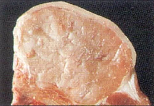 這樣的肉既不好看也不好吃,典型的PSE肉是下面這樣的:
