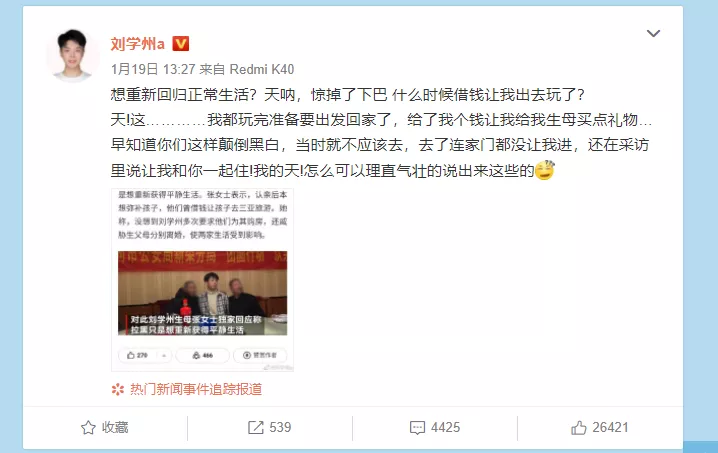 不停在網上和媒體、和網友、和親生父母對線: