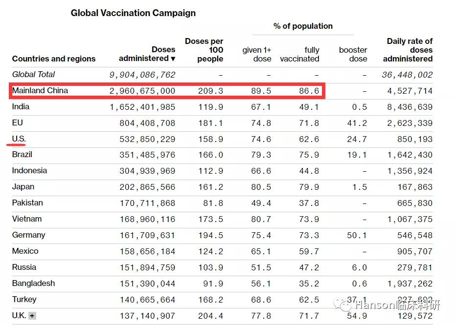 中國內地的按人均接種比例已經遠遠超過美國、歐盟、英國、以色列和加拿大;完全接種疫苗的比例高達86.6%!