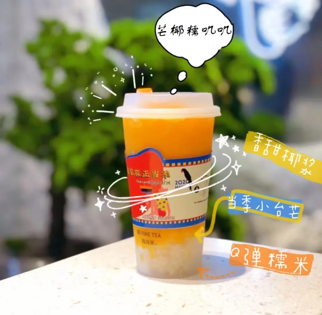 百分茶的研發總監楊世忠告訴我,他們在研發芒椰糯嘰嘰這款產品時,靈感主要來自於血糯米奶茶和東南亞的芒果糯米飯。