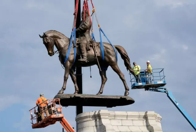 不知大家還有沒有印象,隨着美國“黑命貴”聲勢日盛,掀起了一場“推倒雕像運動”,被認為是代表“白人至上”、“種族歧視”的名人雕像紛紛被拆除、推掉,這裏面就有美國南北戰爭時期**“南軍”總司令羅伯特·李**。李將軍在全國各地的雕像陸續被拆除,到去年9月,位於當年內戰中南方首都里士滿(現弗吉尼亞州首府)的李雕像也被移除。