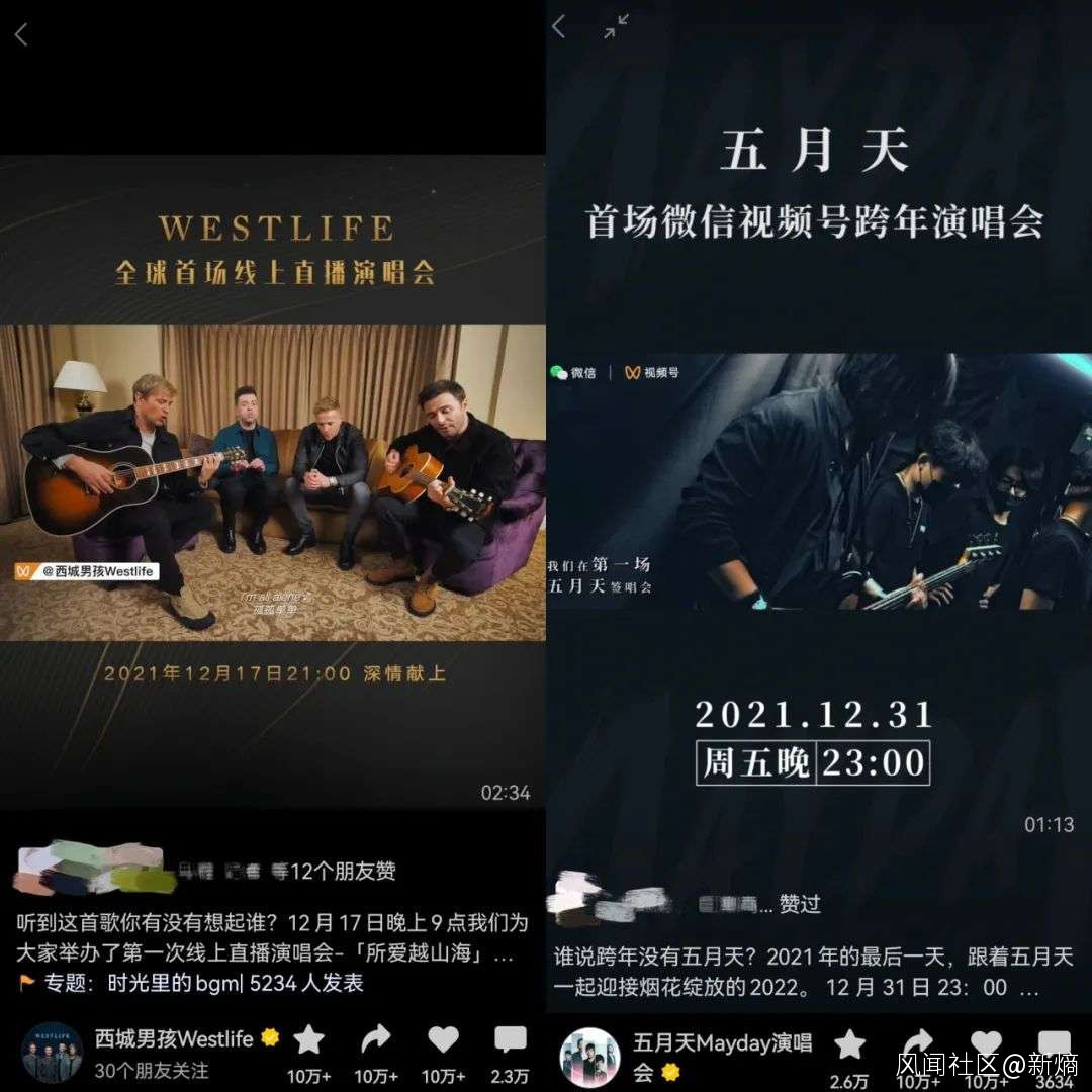 2021年底,視頻號更是開始了線上直播演唱會。西城男孩直播演唱會觀看人數超2700萬,最高同時在線觀看人數達150萬;隨後五月天演唱會也再度刷屏。當線上直播演唱會成為常態,用户的觀看習慣也隨之養成,於視頻號而言的確是步好棋。