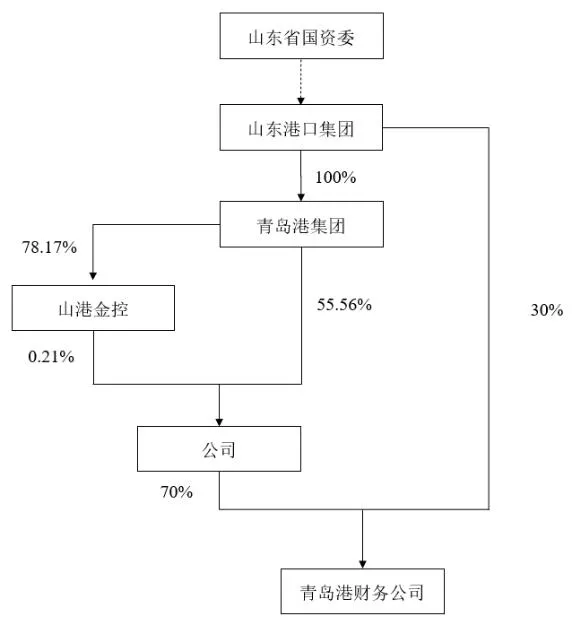 前述股權轉讓完成後,青島港財務公司的股權結構圖如下: