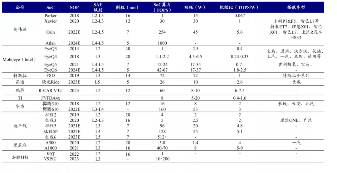 智能駕駛SoC長期被國外巨頭把持,國內處於量產初期。