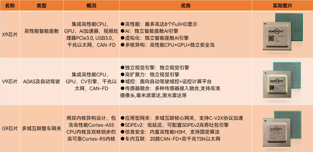 筆者還注意到,在算力提升下智能座艙SoC和智能駕駛SoC的重合度越來越高,二者界限愈加模糊,同時X9、V9、G9三個系列SoC在異構集成(將不同內核封裝在一顆芯片上)上擁有一定的相似度。