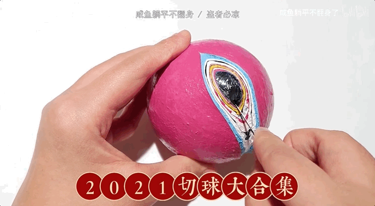 每當看到這種切開水球的視頻,我先是感覺到被濺一臉的驚嚇,但隨之而來的是哇喔的驚喜,這種感覺就像吃餃子吃到塞着硬幣的那一顆。