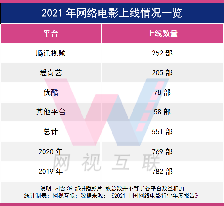1月24日,中國電影家協會網絡電影工作委員會聯合雲合數據、愛奇藝、騰訊視頻、優酷等共同發佈了《2021中國網絡電影行業年度報告》。網視互聯(ID:wxs360)結合相關數據對《報告》進行了重點解讀,並整理出了這份“2021網絡電影成績單”。對這一年來全網上線的網絡電影以及行業變化趨勢進行剖析,以供行業參考。